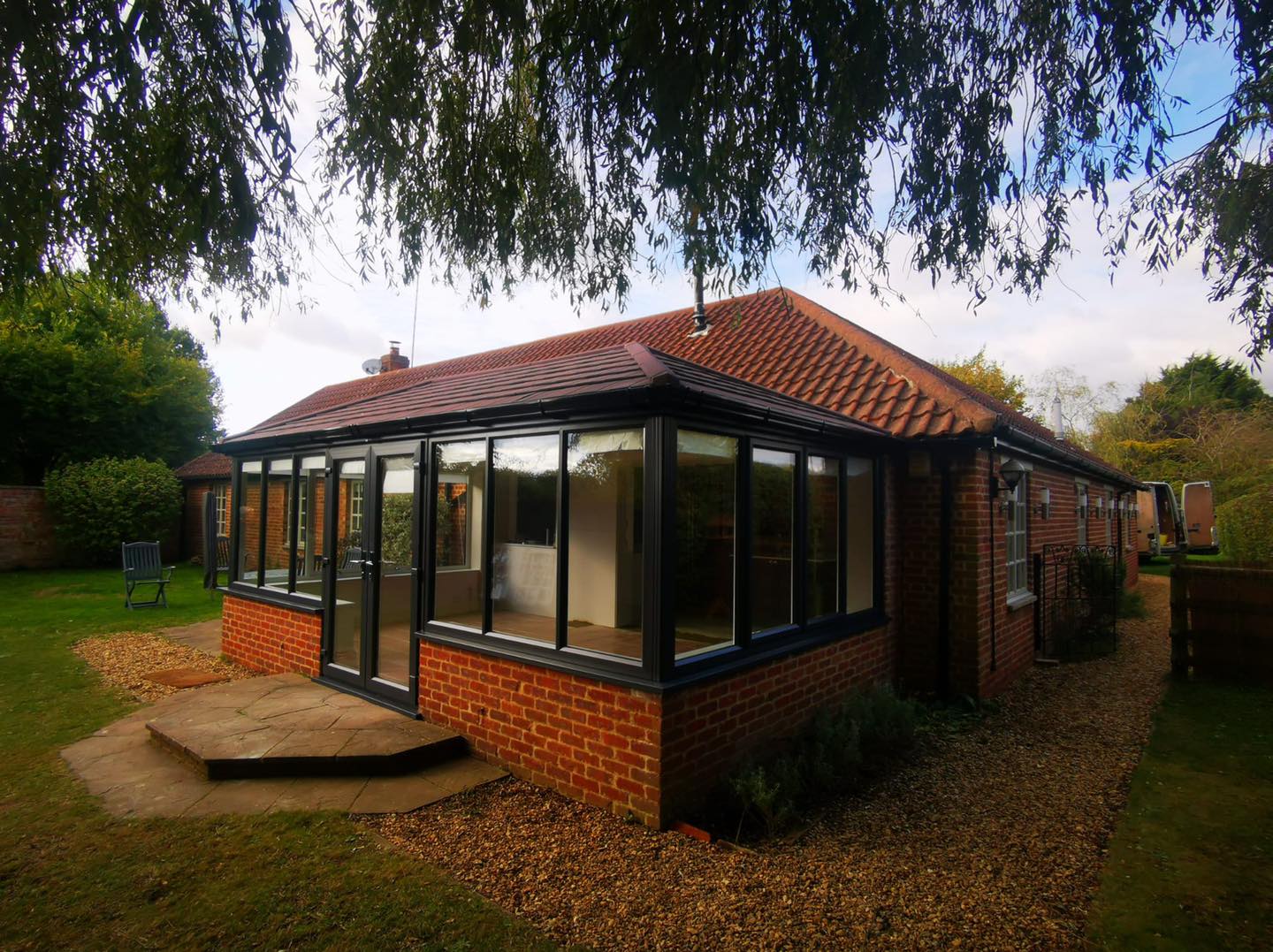This Gable End conservatory lets lots of light in and the Antique Red shingle tiles were an exact colour match for those on the main roof of the property
